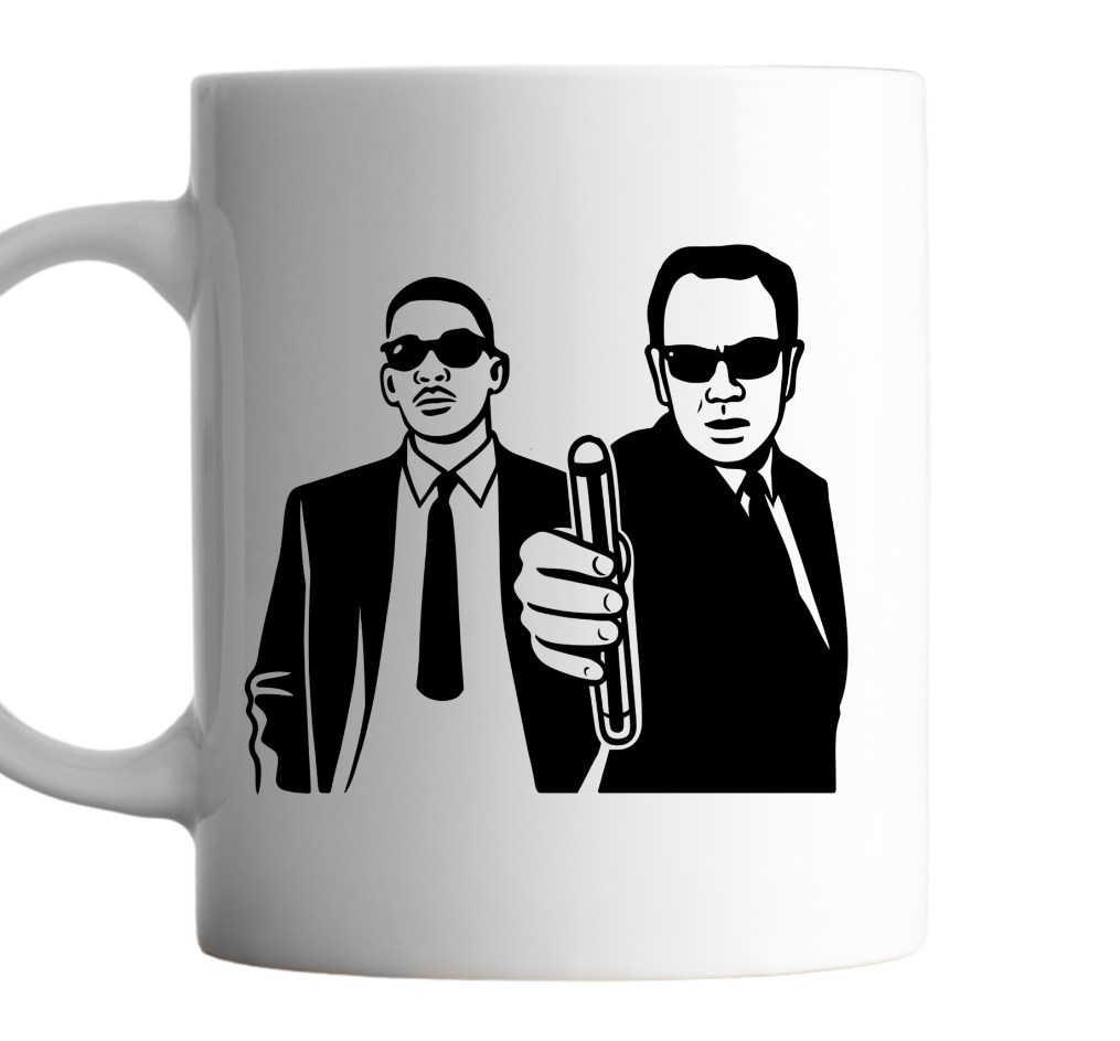 Zanurz się w kultowy klimat tajnych agentów dzięki temu wyjątkowemu kubkowi o pojemności 325 ml. Nadruk przedstawia dwie postacie w czarnych garniturach i okularach przeciwsłonecznych, z charakterystycznym urządzeniem do wymazywania pamięci skierowanym w stronę widza. Grafika została wykonana w stylu wektorowym