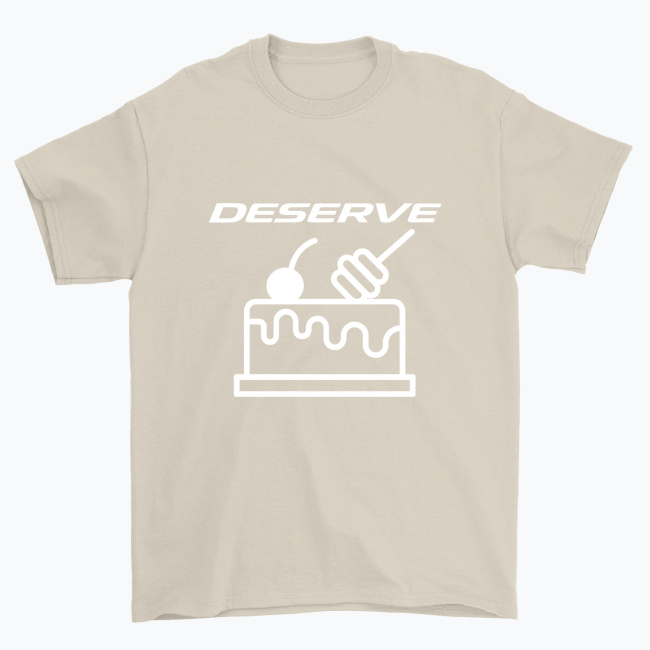 „Deserve” – gra słów, która wciąga jak najlepszy deser. Słodki vibe, ale z pazurem. Czy to chodzi o słodkości, czy o życie, szacunek i spełnienie? To już zależy od Ciebie. Koszulka, która mówi jedno: zasługujesz. Na sukces. Na luz. Na ciasto. Na wszystko.