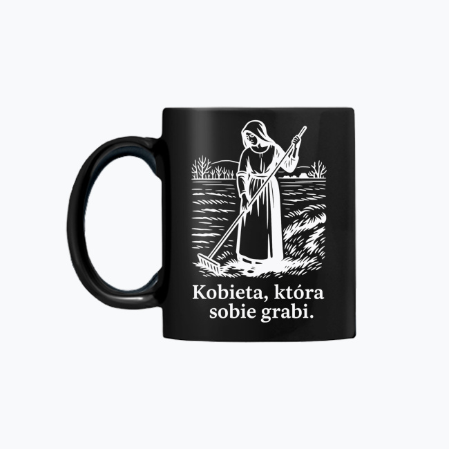 🖤 Kubek „Kobieta, która sobie grabi” – czarna kawa, czarny humor