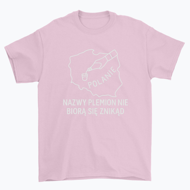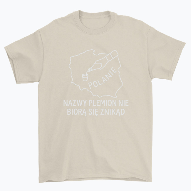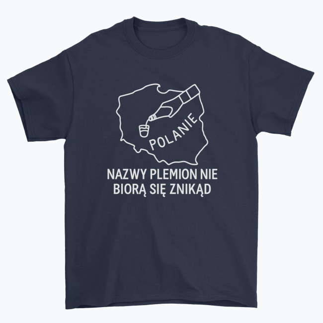 Koszulka „Nazwy plemion nie biorą się znikąd” to żartobliwe nawiązanie do pradawnych czasów, kiedy nasi przodkowie – Polanie – mogli mieć nieco inny powód do spotkań niż tylko uprawa roli. Prosta grafika w zarysie mapy Polski, kieliszek i butelka mówią wszystko, co trzeba.